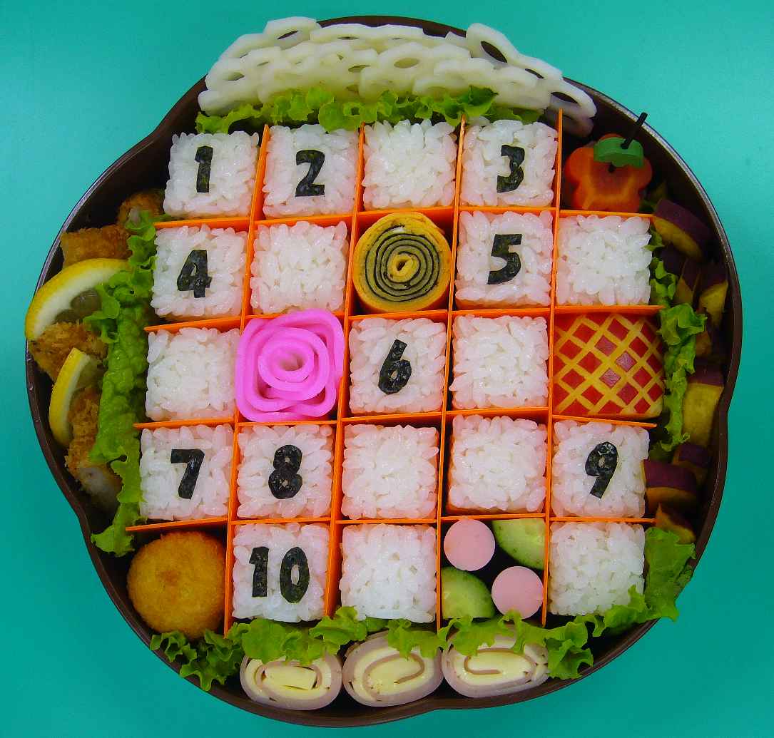 In the case of the child’s bento, moms go through elaborate efforts to make lunch tasty and beautiful. You’ll see an enormous variety of foods for a bento: Tiny hot dogs. Mushrooms, soaked in soy sauce, wrapped in a thick seaweed and tied together with a shoelace of three noodles. A single meatball. A single nugget of fried chicken. A pickled lotus root. Radish. A small onigiri. A single piece of sushi.