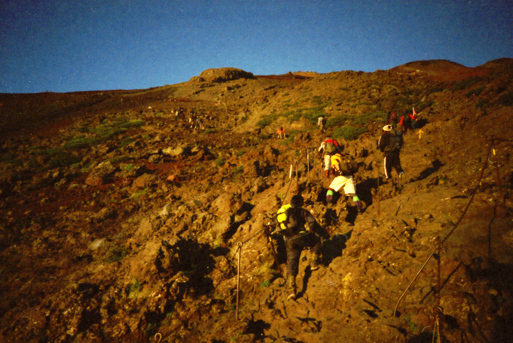 I appreciated your account of the climb. It is difficult to explain to the uninitiated the surreal atmosphere of not only ascending such a foreign formation but while being so immersed in the Japanese culture. I made the climb during the late 1980’s when I was stationed on the USS Midway in Yokosuka with a few of me shipmates. We left the base in our rented van at dawn and arrived at Mt Fuji to began our climb at noon. We all bought climbing sticks with flags and bells attached so we could get the station brands along the way and removed the bells immediately before the jingling drove us mad. We arrived at one of the stations late that night where we ate and slept for a few hours. They woke us at 3:00 AM so we could make the final ascent. We completed the climb in a daze then sat at one of the temples lining the crater rim and drank Grand Marnier while watching the sun rise through the layers of clouds illuminating the lakes and surrounding countryside. The way down was much as you described but I had the perfect pair of hiking boots and soon learned that if I lifted my toes a bit I could swiftly ski down on the top of the volcanic gravel with little effort. Thanks for the memories of one of my special times in Japan.