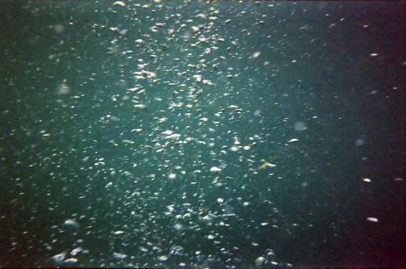 And bubbles are cool. Through plastic and saliva, I saw the silver half-circles of exhaled air escaping from other divers, rising to the surface like jellyfish. With enough people it’s like floating in Alka-Seltzer. Poked bubbles stay intact, slipping around my fingers like blobs of mercury.