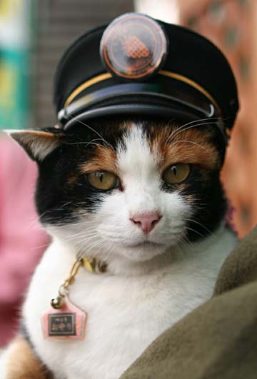 Tama, the station cat, is actually an employee of the Wakayama Electric Railway company, with the official role of “station master.” The cat got the job when the railway moved from manned to unmanned stations in 2006. They decided to give the cat a station master’s hat and feed it, because apparently just firing the old station manager wasn’t humiliating enough.