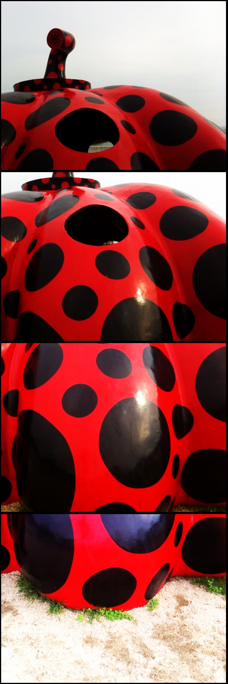 After an expensive and inspiring day (and night) wandering the sculpture park and taking our first of many pictures with giant gourds, we took a shuttle bus to the Miyanoura port and checked into cin.na.mon hostel, a bare-bones hostel with futons on the floor and a first-rate restaurant serving coffee and curry on the cheap. About 15 minutes by bike, we got to Honmura, home to a series of art house projects on the island. Sprinkled in residential and commercial neighborhoods, the art houses are abandoned homesteads or businesses handed over to artists for use as art sites.