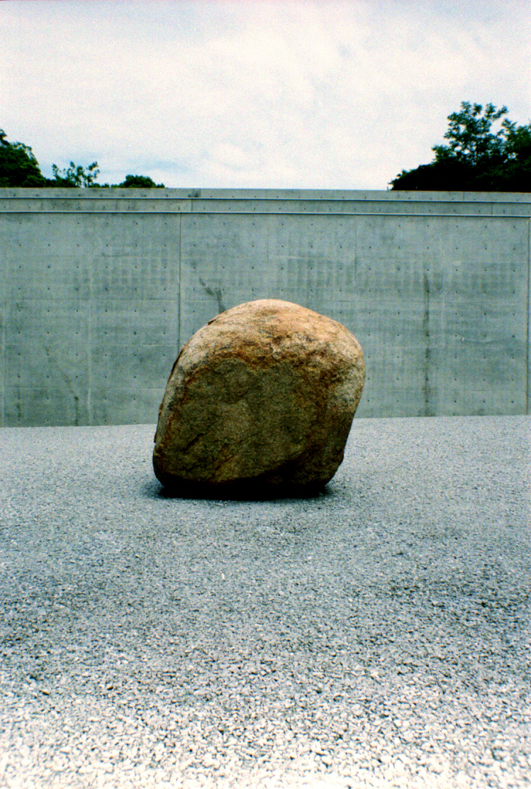 Just across from the Chichu Museum is the Lee Ufan museum, dedicated entirely to a single artist, the Korean-born, Japan-raised minimalist sculptor. The museum houses a few of his paintings, including a meditation room with just three brushstrokes on walls. Elsewhere, he used the careful positioning of stones. The single-boulder aesthetic, standing like a banzai tree as film projections are cast on its shadow, brought to mind questions of what we ascribe to nature. In the piece, the projections are coming from our direction, not from the rock. The reflection in its shadow, then, is what we “project” (literally and metaphorically) on the stones: The power of nature, the distraction of urban life, the passage of time. The stone stays present, but what we bring to it changes.