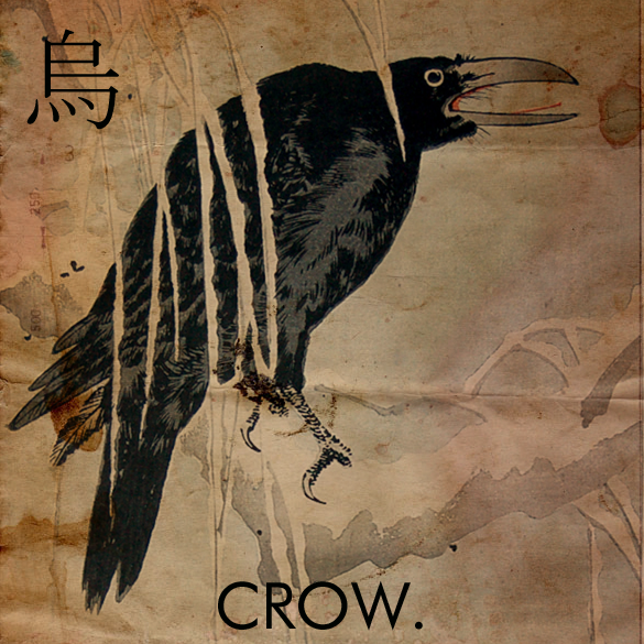 Like all animals. But across mythologies, you will find a role for the crow. He is an omen of death. He carries the souls of the dead to the next plane of existence. He is a trickster, or a messenger, or even creator of the world. Japanese Shinto has karasu-tengu, half-crow, half-human goblins, and yatagarasu, a three-legged crow whose appearance is evidence of divine intervention. (And the emblem of the Japan Football Association.) Crows abound in ukiyo-e, and a particularly nurturing one is the star of a Japanese children’s song, “Nanatsu no ko,” about a mother crow looking after her seven lovely crow children.